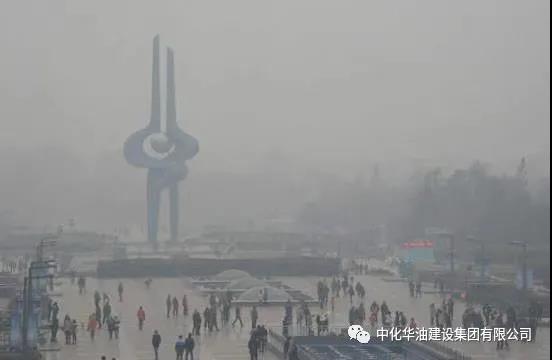 雾霾下的济南市泉城广场