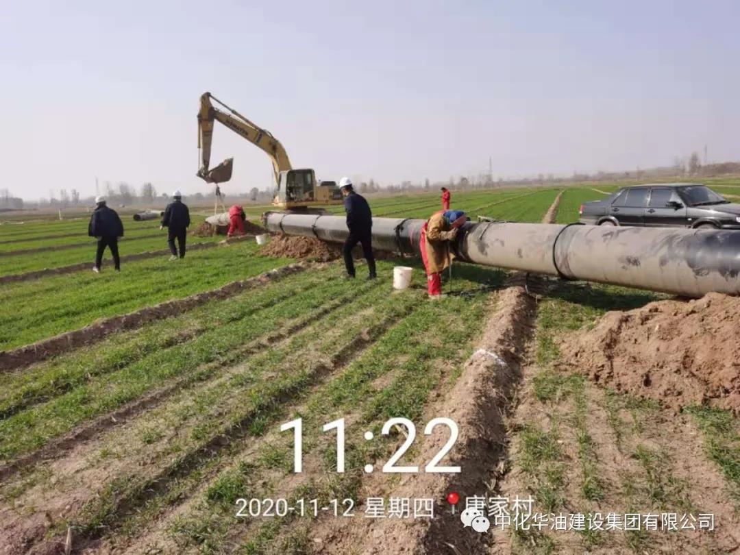 作为该项目的重头戏,唯一的一条高压输气管道,桑梓店阀室至孙耿门站高压天然气管道安装工程有幸花落中化华油建设集团有限公司。本段工程建设地点位于济南市济阳县北环线,主要沿农田敷设。管线长度14.3公里,设计压力6.3MPa。施工内容为:管道焊接铺设;弯管安装;补口;里程桩埋设、警示牌安装、转角桩埋设、警示带敷设等。