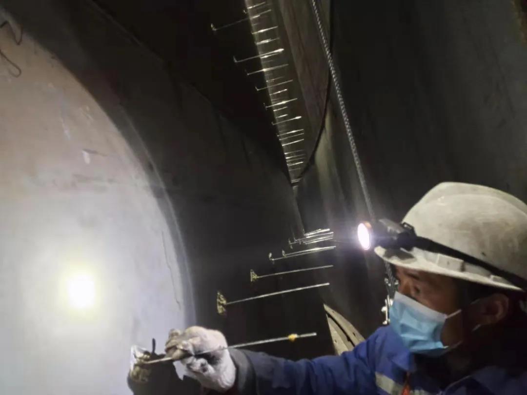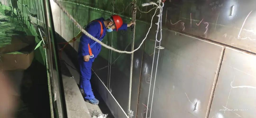 据了解,罐壁弹性毡施工是从储罐吊顶上开始的,进入吊顶施工前要先爬近50米的陡峭悬梯上罐顶,然后从一个直径1米的人孔进入罐里,(一般储罐吊顶只留一个人孔和一个物料孔往里进空气), 整个罐壁保冷施工在高36.5米,宽0.8米的狭窄却又高耸的受限空间中进行。工人在罐内安装施工时,必须佩戴防尘、防毒面罩,并定时检测氧气含量,防止焊烟中毒和缺氧。