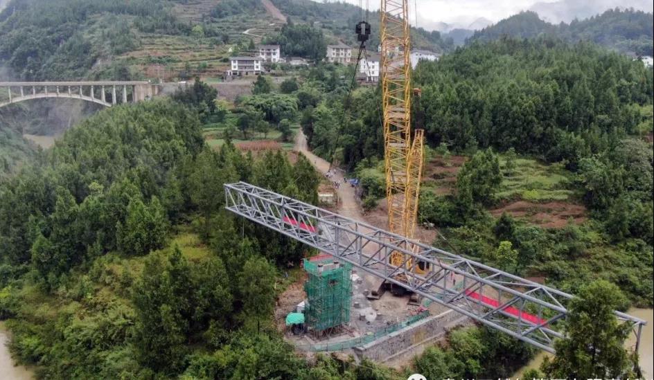9月18日上午8时许,一切准备工作就绪后,随着现场指挥长的口令下达,位于三江河北岸承载量600吨的履带吊车启动,近70吨重的桁架徐徐“起身”。