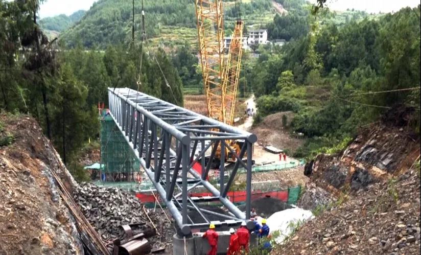 经过两个小时左右的严密组织,重达近70吨的钢制桁架稳稳落在道真县三江河坎上,这标志着正安至道真至大磏天然气管线建设工程的重要节点——三江河跨越顺利完工。