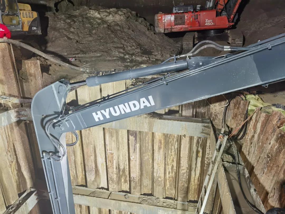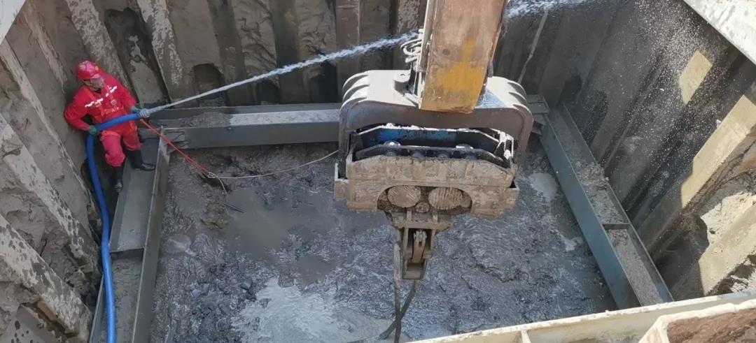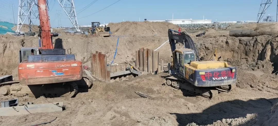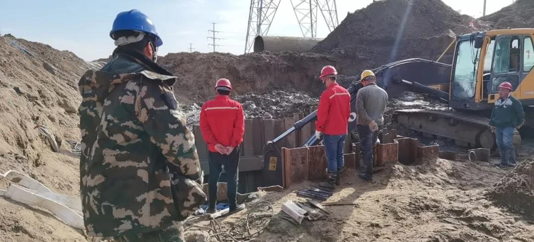 在接到工程后,项目部迅即组织技术攻关,成立攻关组进行了现地勘查、测量,逐一论证了施工方案,最终确定使用长臂吊机和普通挖机结合、与打桩机、水泵等协同施工,采用划区分块、基坑支护、逐片作业的方法,边施工边排查,成立施工安全监护组,全程密切关注施工全程安全风险防范。在经历三次基坑开挖后,最终找到了维修点。对输油管道破损的防腐层和保温层进行了细致的修复,彻底排除了隐患。