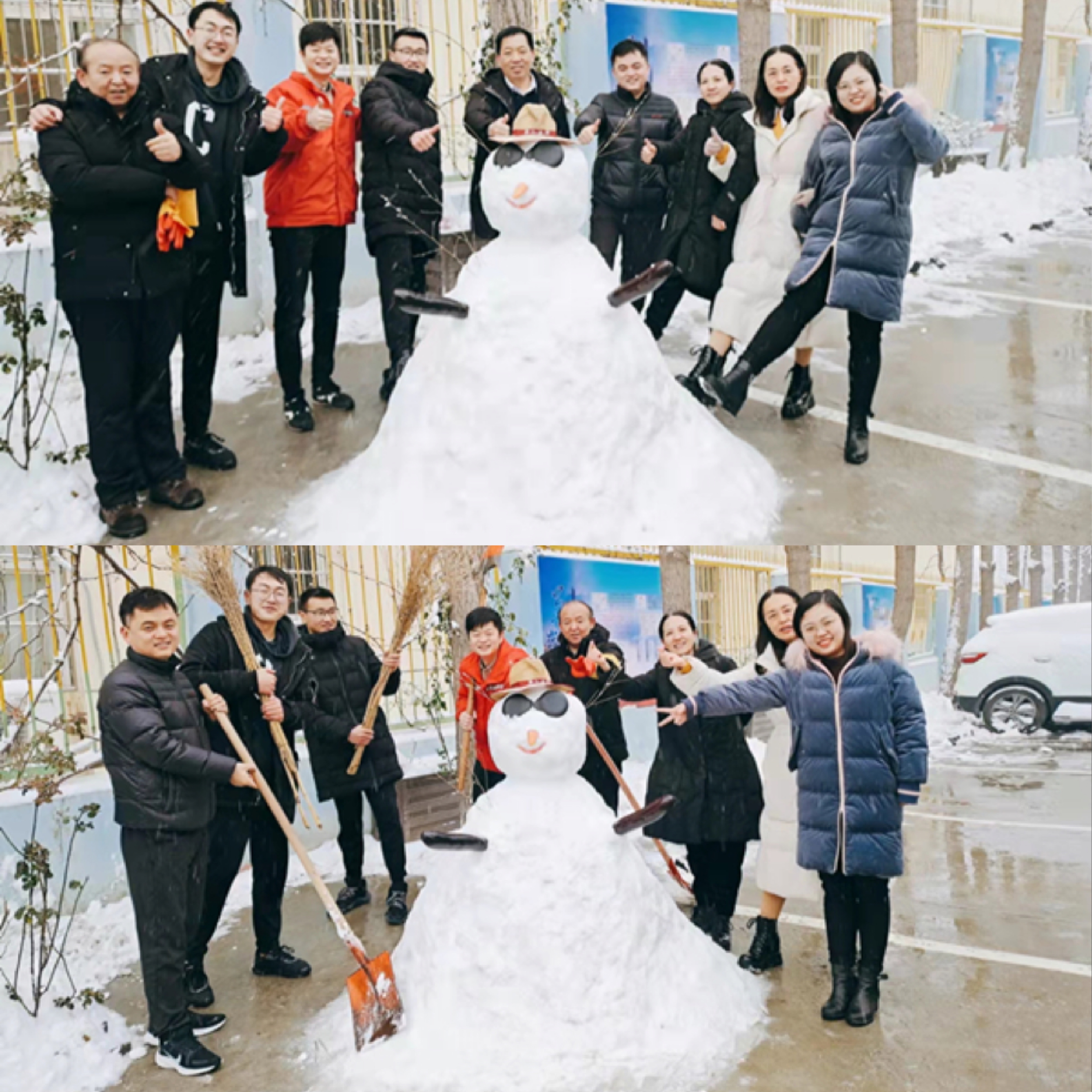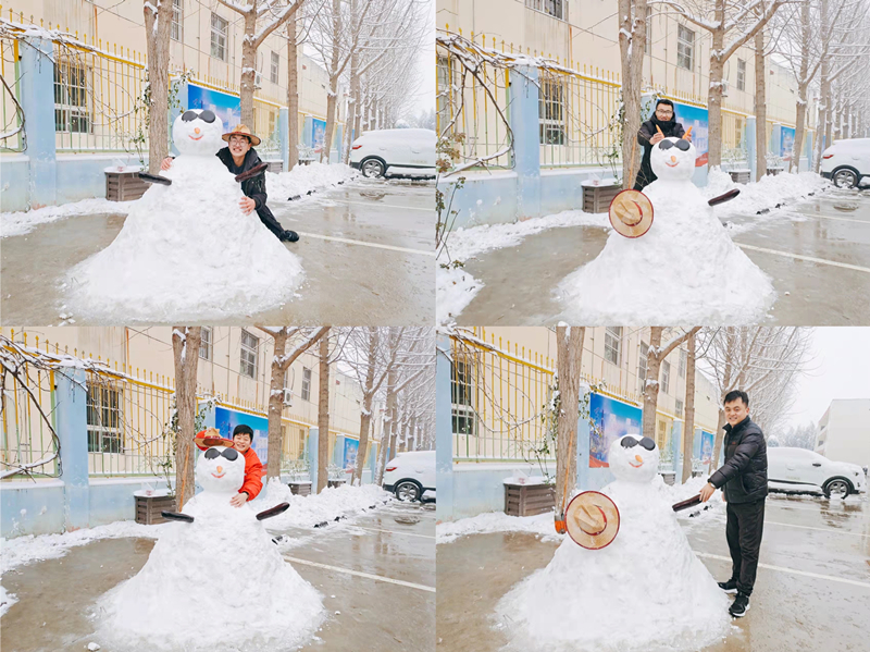 打完雪仗,当然少不了堆雪人儿了。华油小伙子们你一铲我一铲为冬日的华油平添了一份色彩。