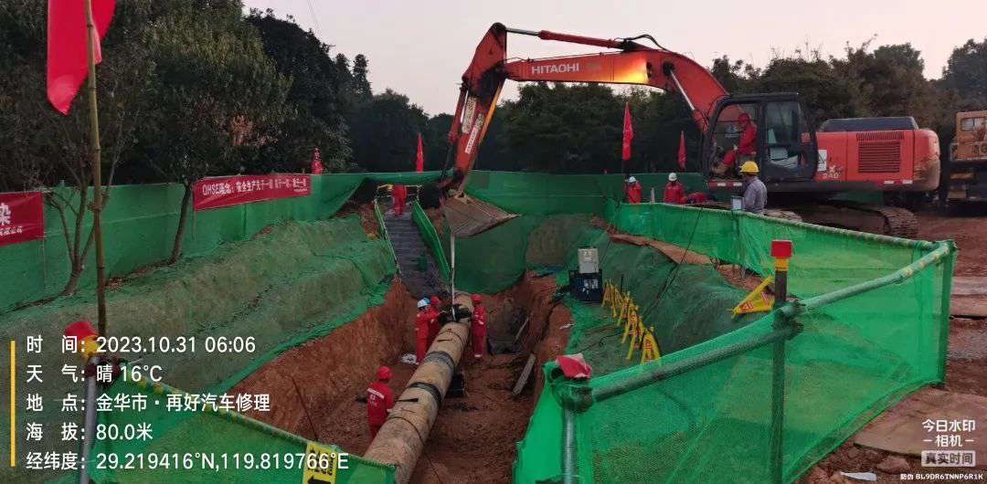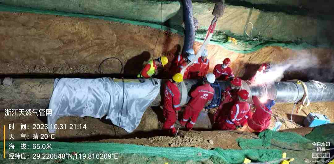 11月1日上午9点,随着最后一道焊口无损检测结果宣布合格,经过25小时的连续奋战,位于金华-义乌天然气管道里程13769.9米处的缺陷管换管工作顺利完成。此处动火连头是中化华油建设集团承建的浙江省网2023年管道缺陷点修复(换管)项目的其中一处,属于特级动火。
